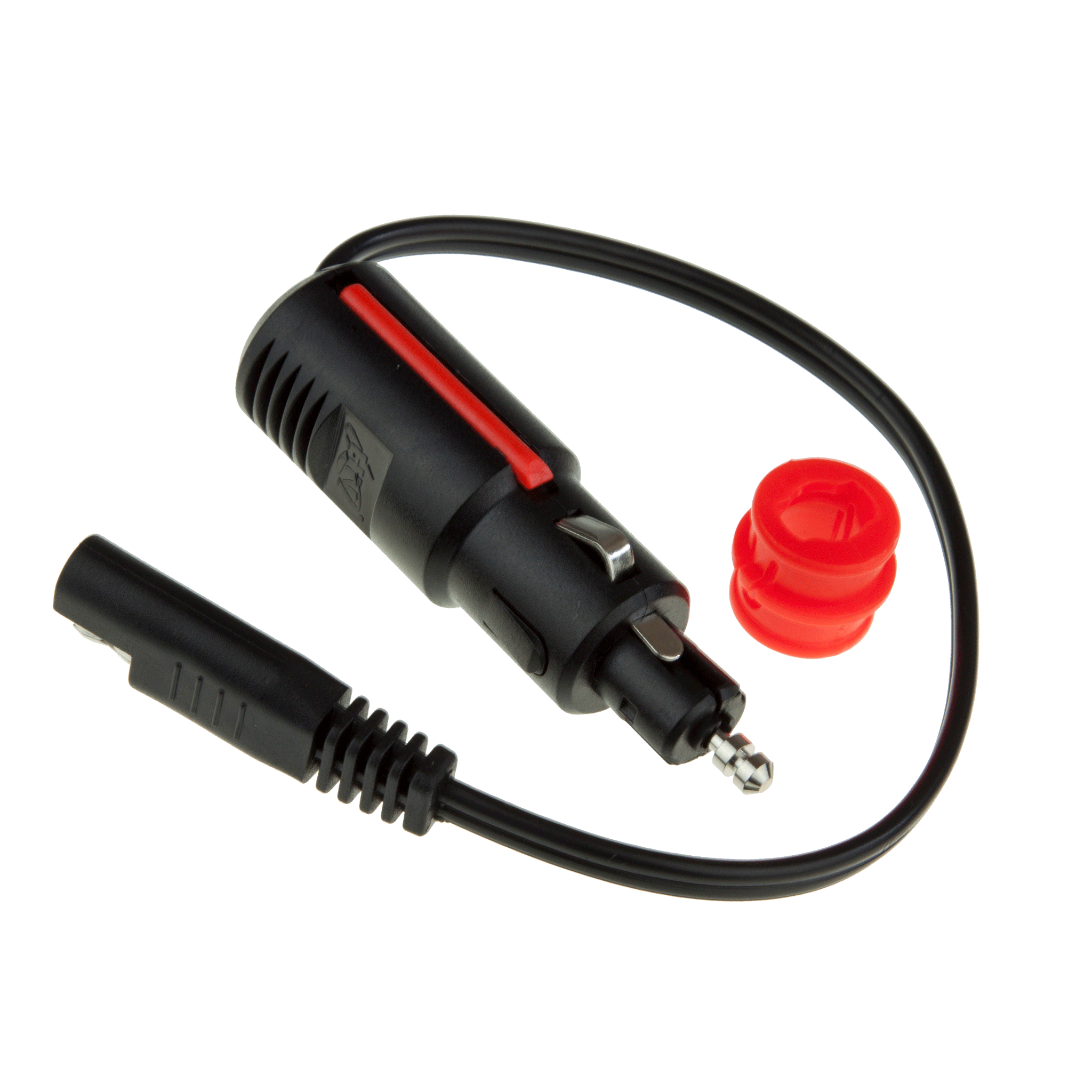 Got an accessory socket on your bike and want to connect a device with an SAE fitting like a MotoPressor Pocket Pump? This adaptor comes with a male lighter fitting that will fit BOTH car and motorcycle lighter sockets. To plug into a motorcycle style (Hella) socket, simply remove the RED adaptor at the front of the plug and plug straight into the motorcycle socket. To plug into a car socket, leave the RED adaptor in. Now you can use your MotoPressor Pocket Pump on both your bike and car. Plug into any SAE battery lead.