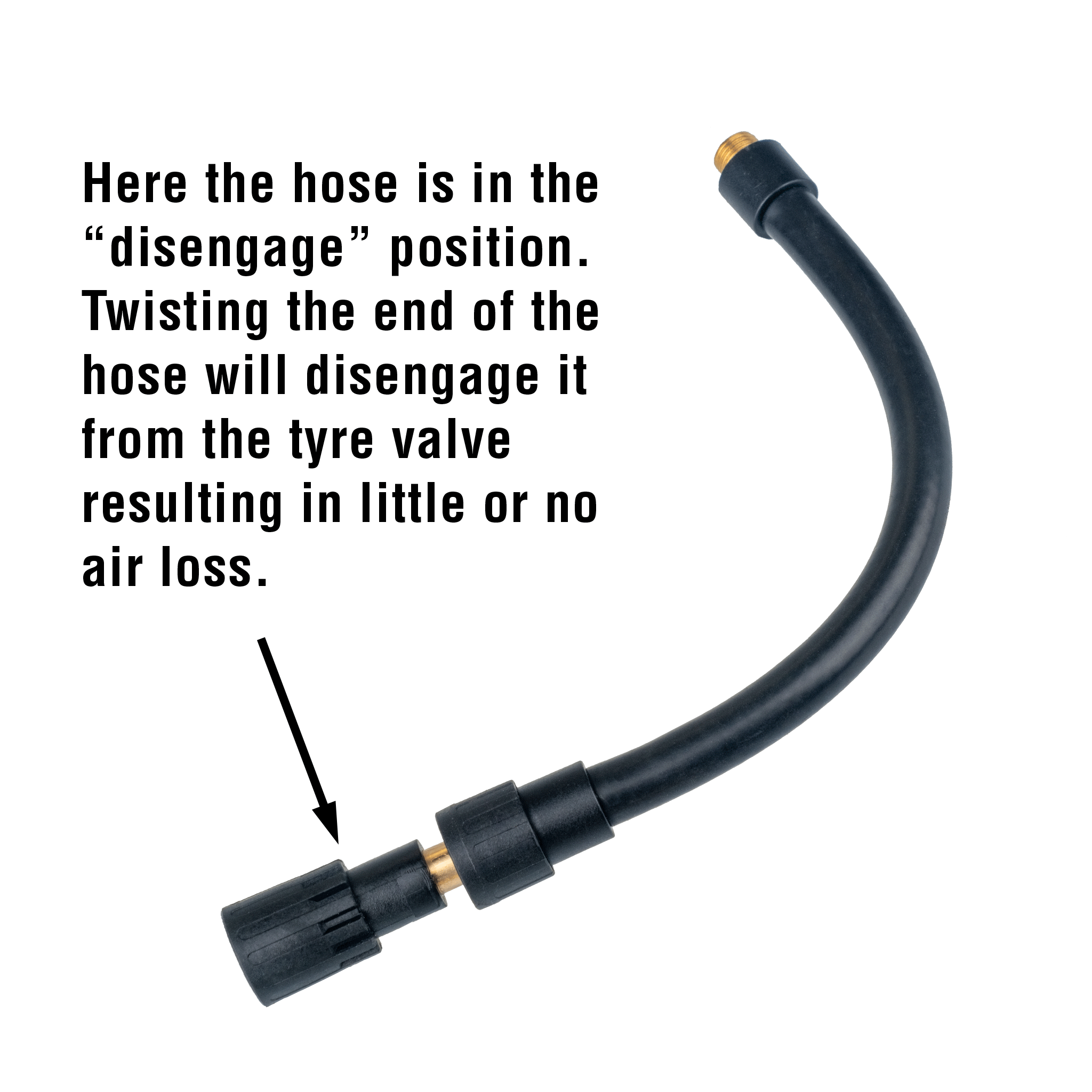 This product is especially good for high pressure applications. For those of you using the TUbliss system or have air shocks that require precise and high pressure, this is for you. To use the hose, attach it to the valve stem, inflate and when you reach to your desired pressure, simply twist the chuck and it will "pop" off the valve stem resulting in little or no air loss. Click here for a demo.