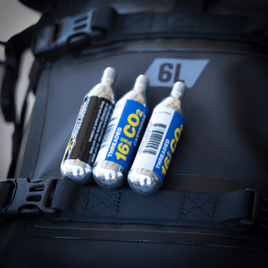 Aluminium CO2 inflator and hose. The Red Control Valve allows you to control the air entering your tyre and puts you in complete control over how much CO2 to discharge at a time. By closing off the valve you can replace an empty an empty cartridge with a full one. Click HERE to view a demo on how to correctly fill a tyre using the inflation tool.